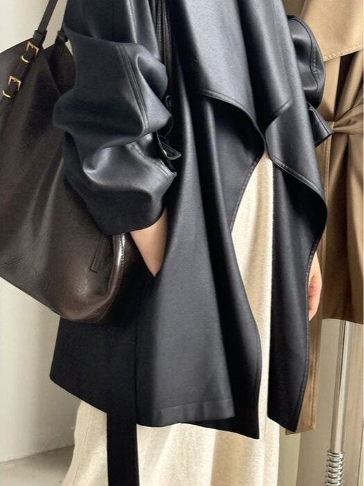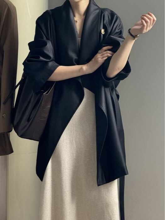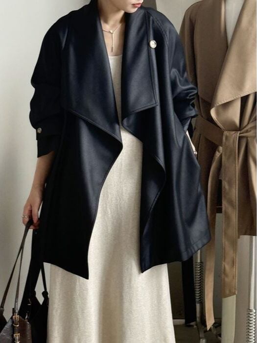⚪︎ 大きなラペルで首元にアクセントをプラス