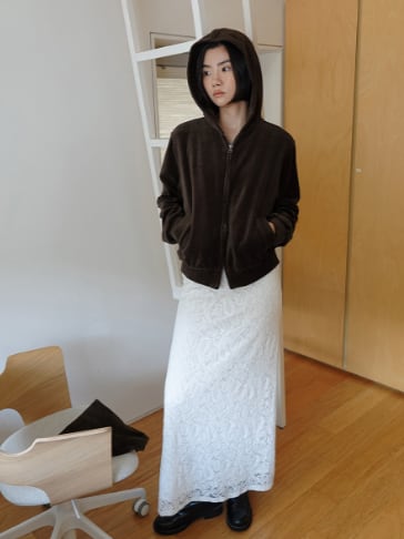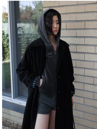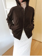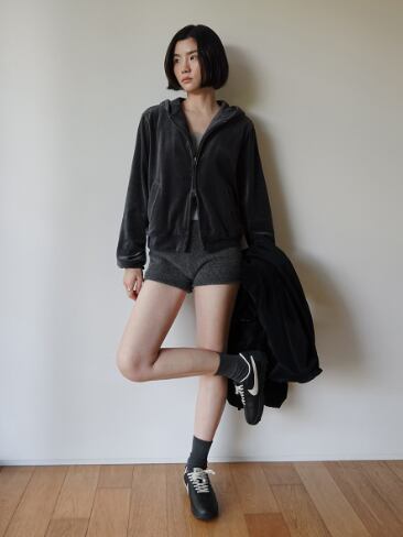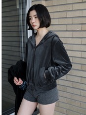 なめらかなベロア素材とダブルジップの