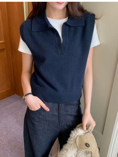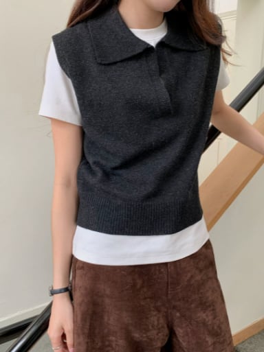 Polo Collar Elegant Knit Vest