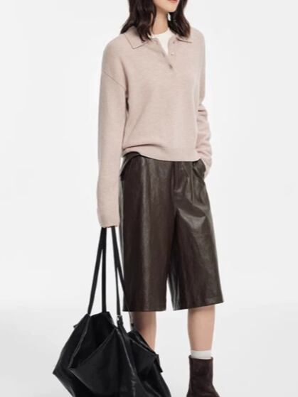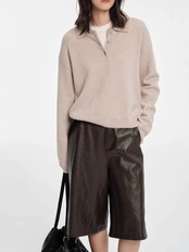 ポロラペルデザインが魅力のレトロニットセーター。