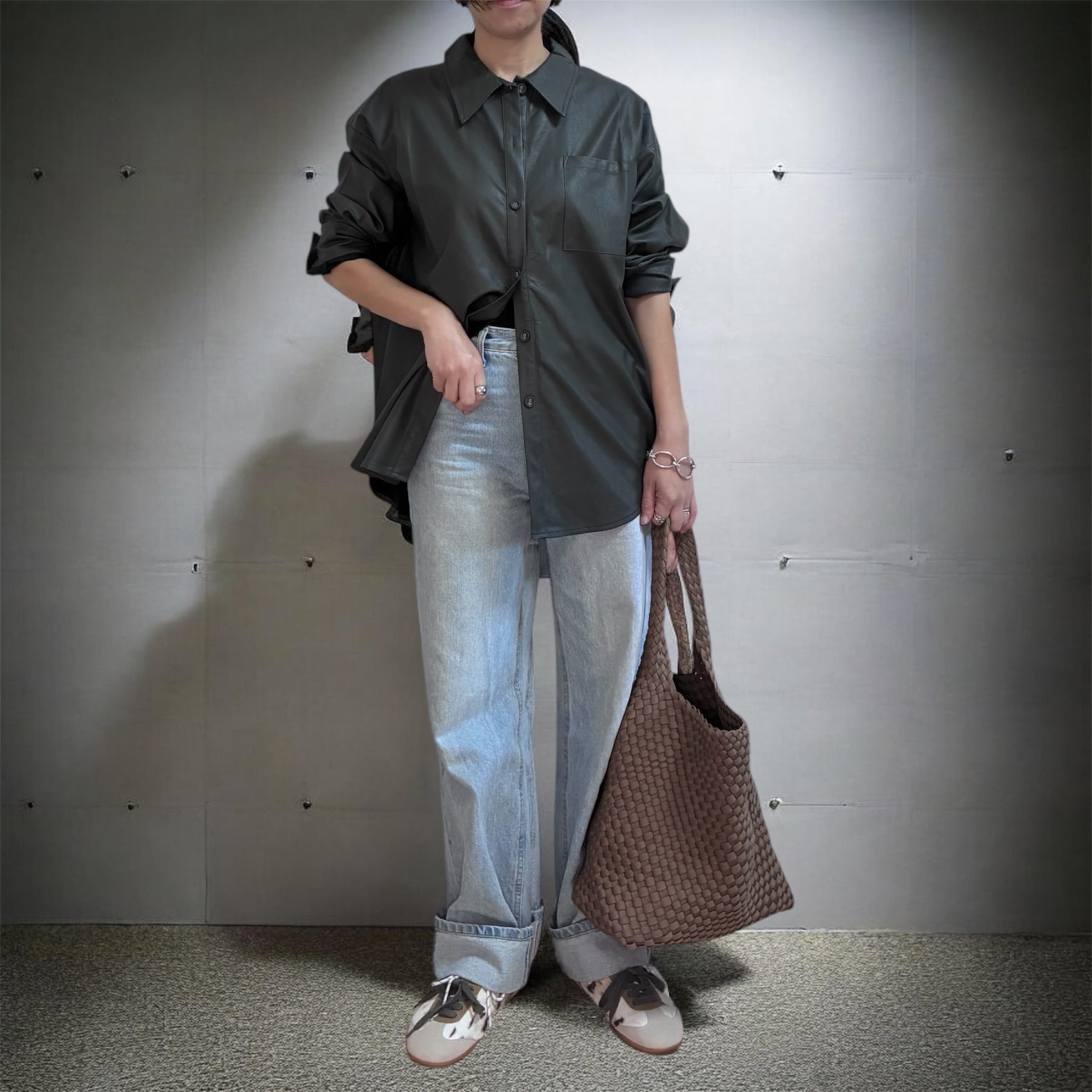 落ち着きのある都会的コーデが完成します。